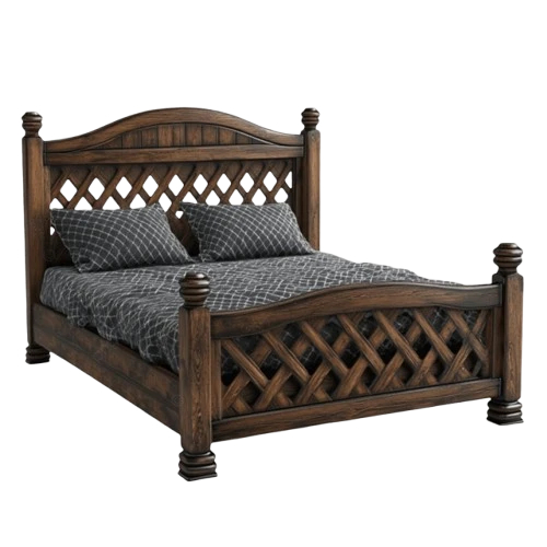 Inspired by Indian heritage craftsmanship, this bed is crafted from premium, seasoned teak wood, celebrated for its strength and resilience. The standout feature is the meticulously carved lattice (jali) pattern across the headboard and footboard, providing both aesthetic warmth and visual openness. The platform-style construction supports a mattress directly—no box spring needed—while the natural wood finish adds a cozy, timeless ambiance. This design suits modern, ethnic, or fusion interiors and promises both style and generations of durability.